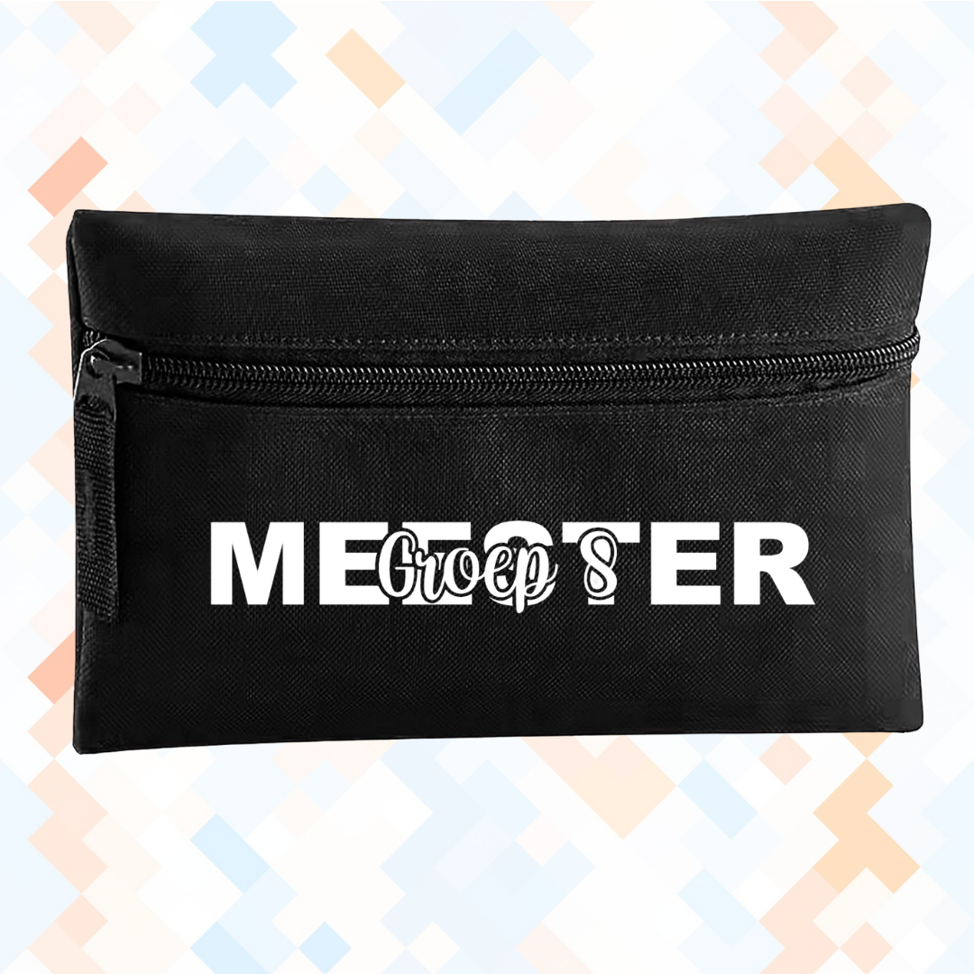 Nooit meer rondslingerende stiften potloden of kleine spulletjes. Met deze stevige zwarte etui met een tekst zoals Liefste Juf geef je een cadeautje dat écht gebruikt wordt én een glimlach bezorgt.
